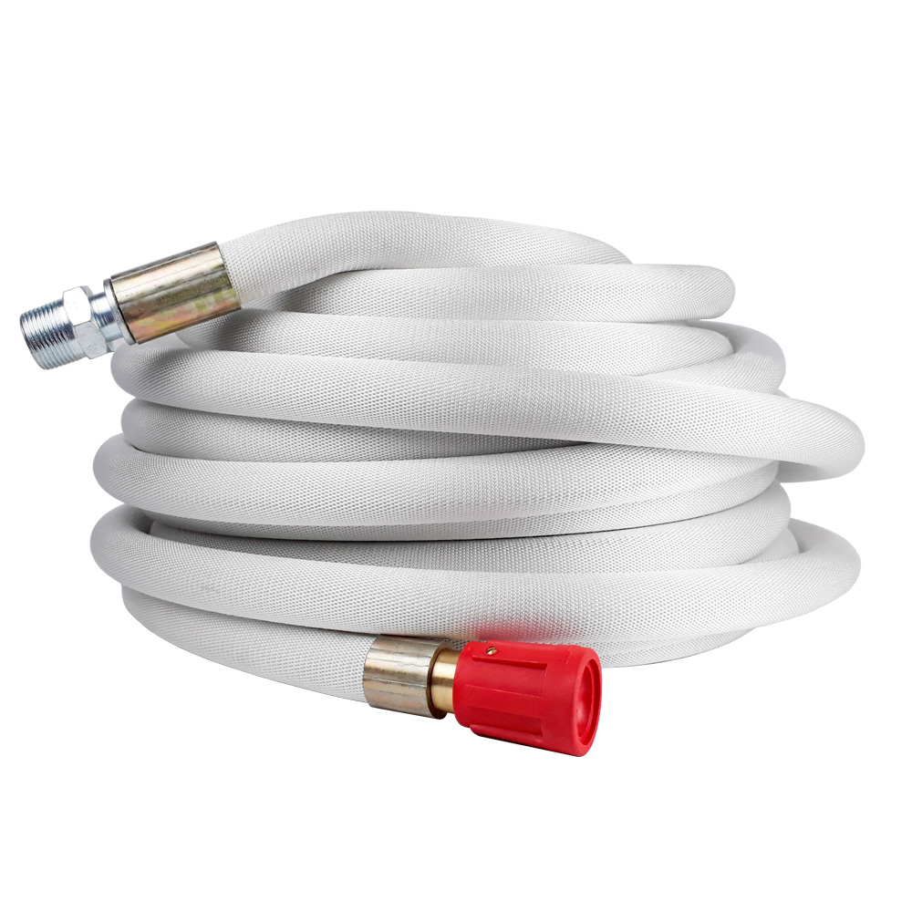 Mangueira de combate a incêndio semirrígida (mangotinho) Rigidflex na cor branca fabricada em fibra sintética, de tecido, por meio de entrelaçamento de fios de monofilamento e multifilamentos de alta tenacidade, de modo a manter a sua seção circular, mesmo quando não pressurizada. Tubo interno de borracha sintética no diâmetro de 25mm (1"). Conexão de entrada de 1"  rosca macho 11 fios BSP, e saída com esguicho de corpo interno em latão, com punho moldado em borracha vermelha com indicador ON-OFF em alto relevo. Normas de referência: ABNT NBR 13714, 16642 e EN 964/1996.